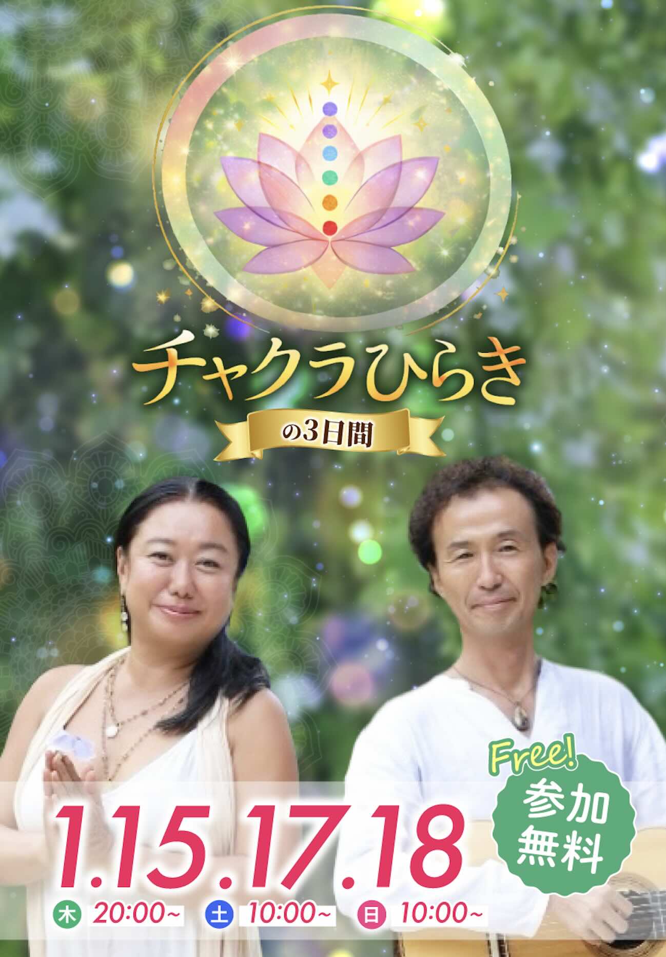 このチャクラひらきは、新しい一年のはじまりに、祝福を受け取ってほしいそんな想いから、参加無料でお届けしています。